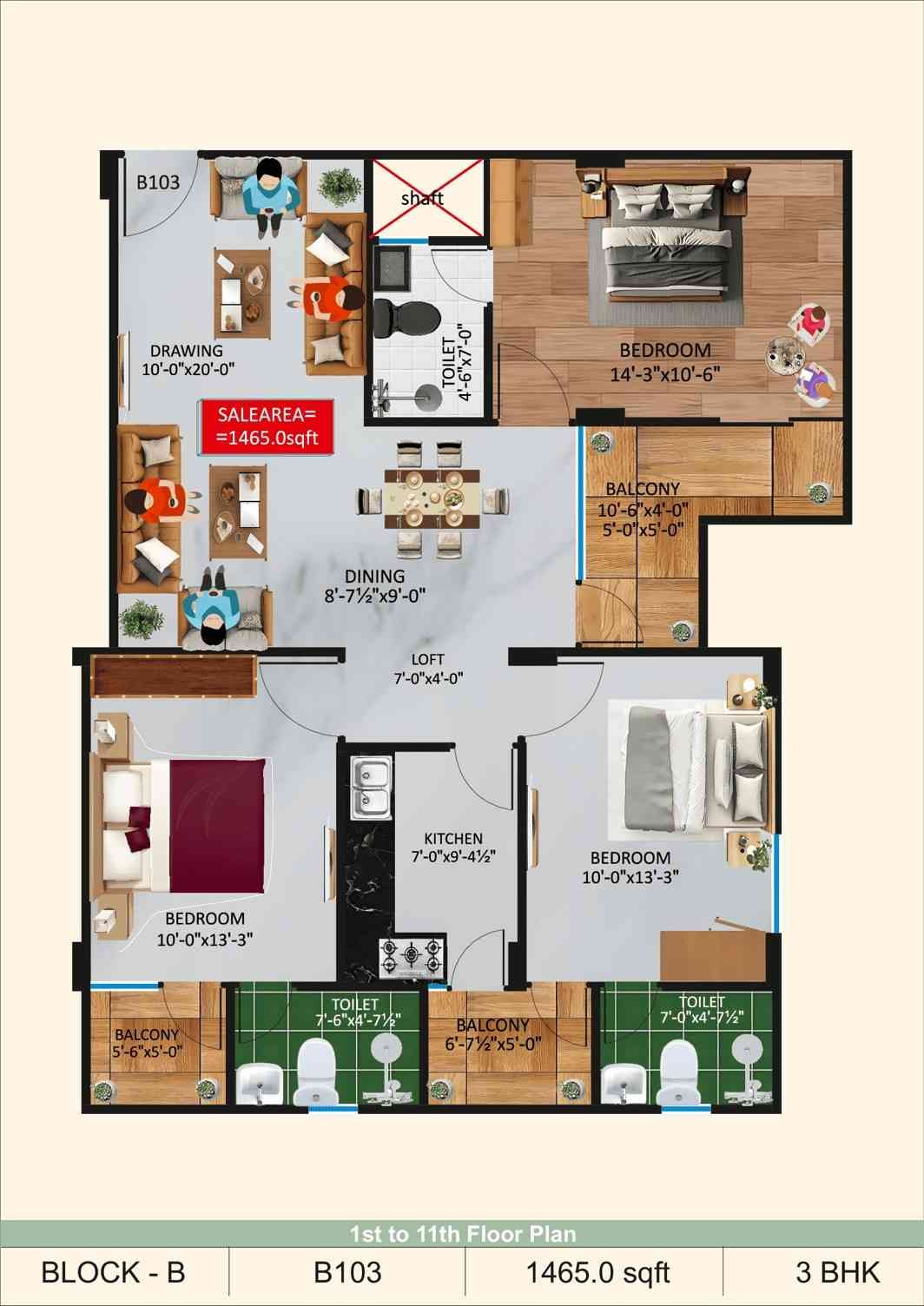 • Property Size 1465 Sq Ft